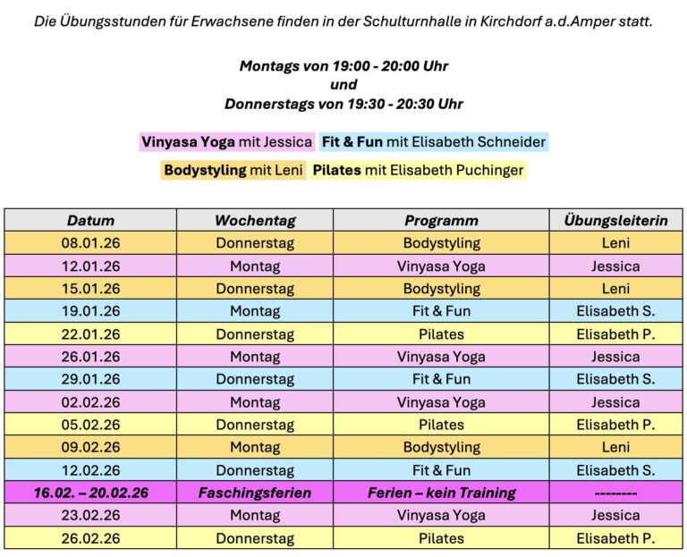 Am Donnerstag, den 08.01.2026 geht es wieder los und so sieht der Gymnastikplan für die ersten Wochen aus: Auf ein…