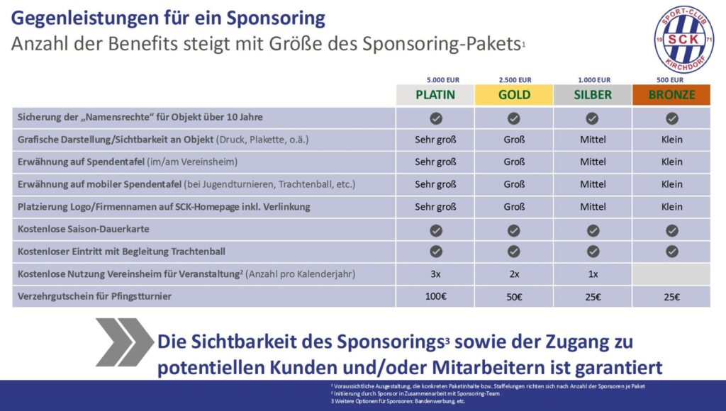 Kontaktaufnahme und weitere Details gibts via sponsoring@sckirchdorf.de!